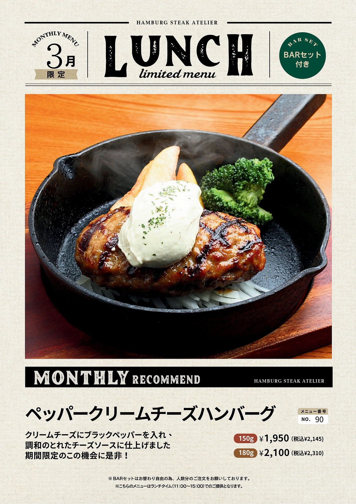 さらにサラダ、スープ、ドリンクに加え、ご飯やパン、フルーツ、デザートまで楽しめるBAR SETも人気です。