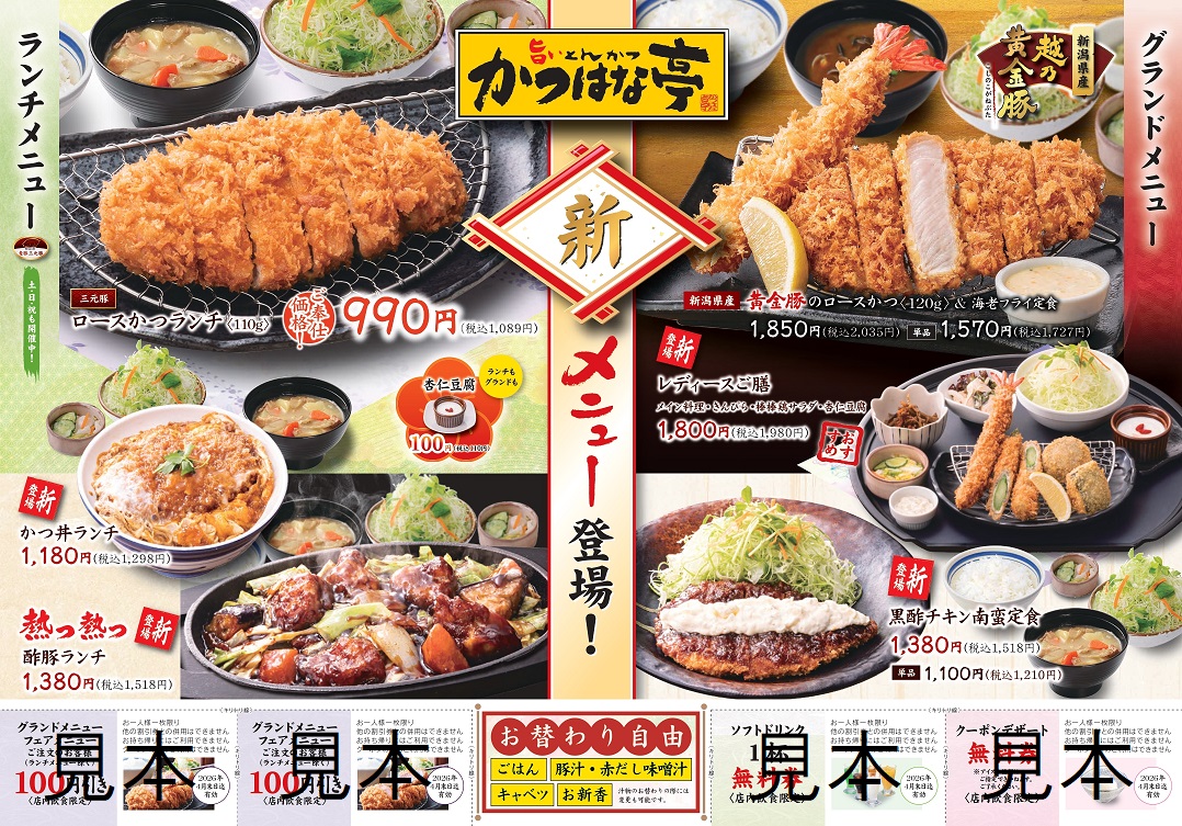 新潟県産「越乃黄金豚」を、ふんわりサクサク食感の生パン粉で揚げたとんかつが名物です。