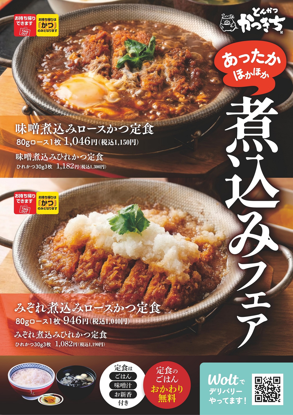 和風だしとふわふわ玉子が決め手の本格派かつ丼や、手作りタルタルソース、オリジナルブレンドのスパイシーなカツカレーなど、ひと手間加えておいしさにもこだわっています。