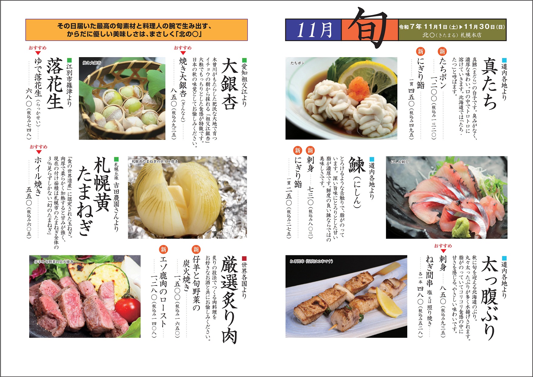 北の都・札幌。北海道の旬と食通が集まるこの街で三十余年。漁港から直接取り寄せた新鮮な魚貝や契約農家の野菜を、昔ながらの調味料で丁寧に調理。どなたにでも安心かつ美味しく召しあがっていただける北の恵みと和の粋をお届けしています。
