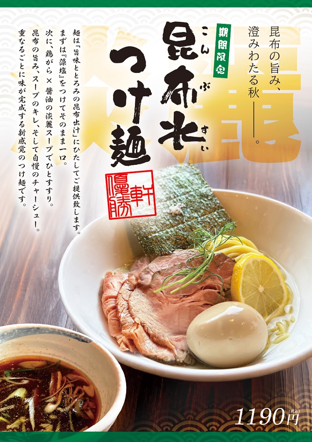 熊谷総本店 昆布水つけ麺 9月26日(金)より販売開始