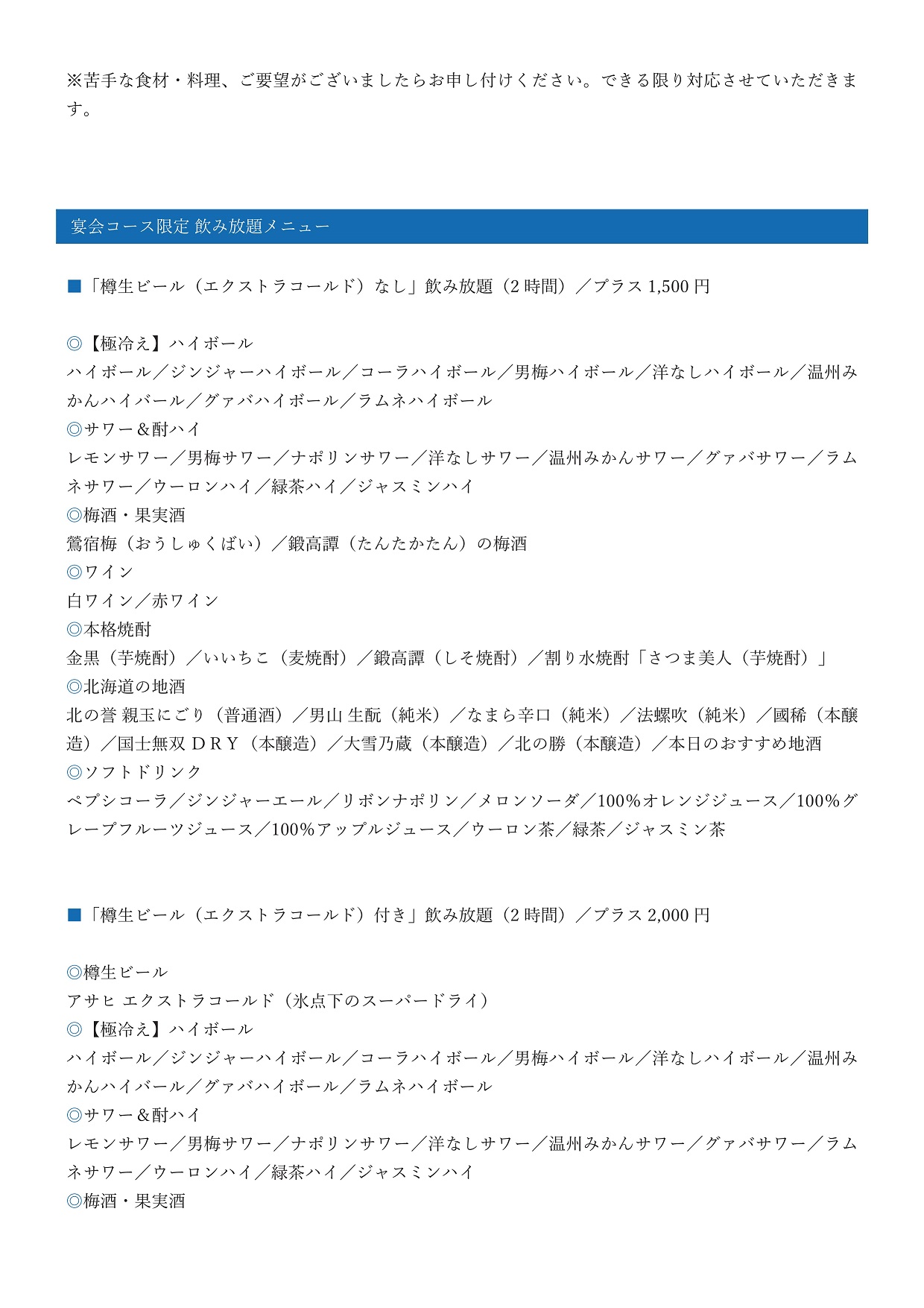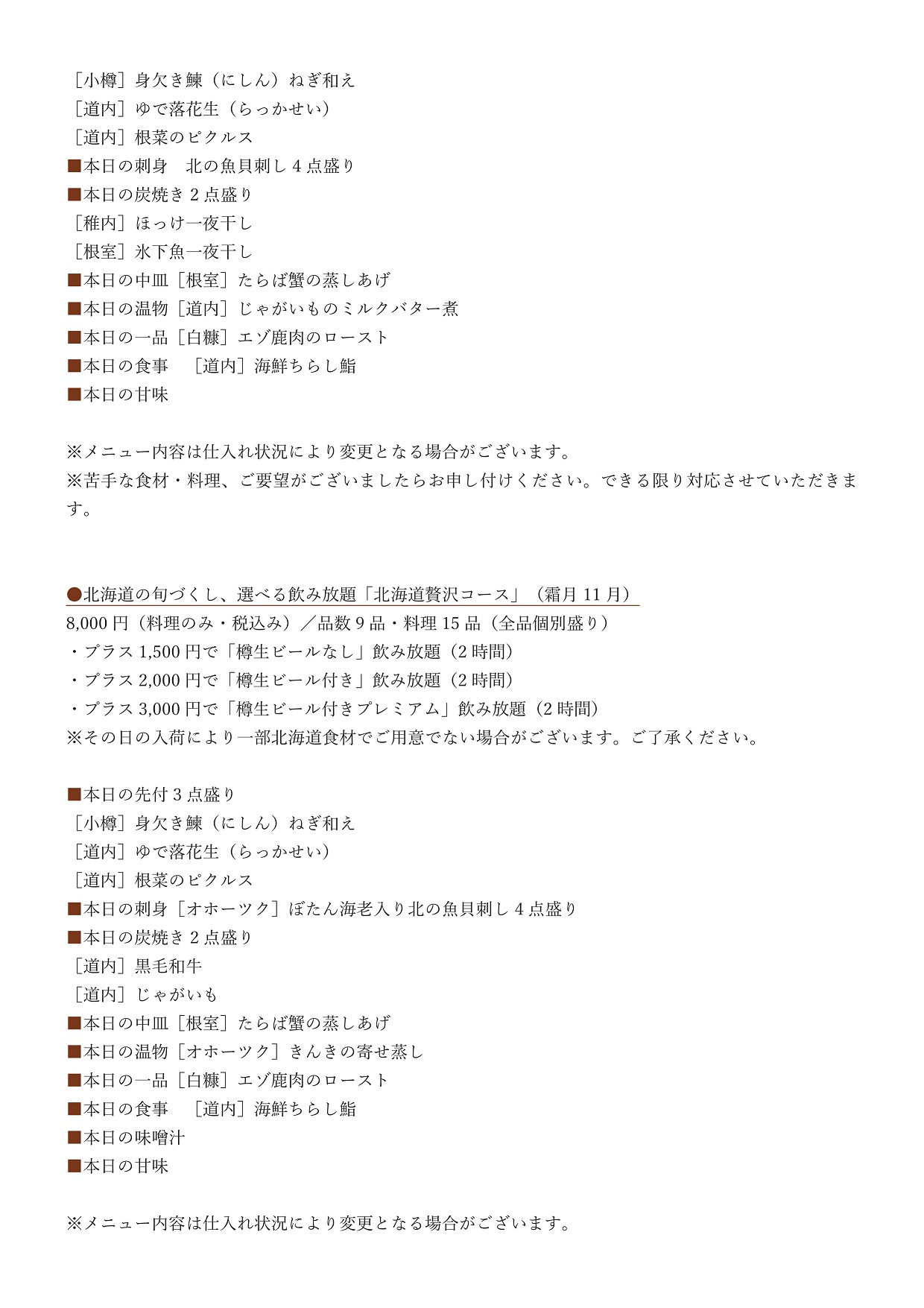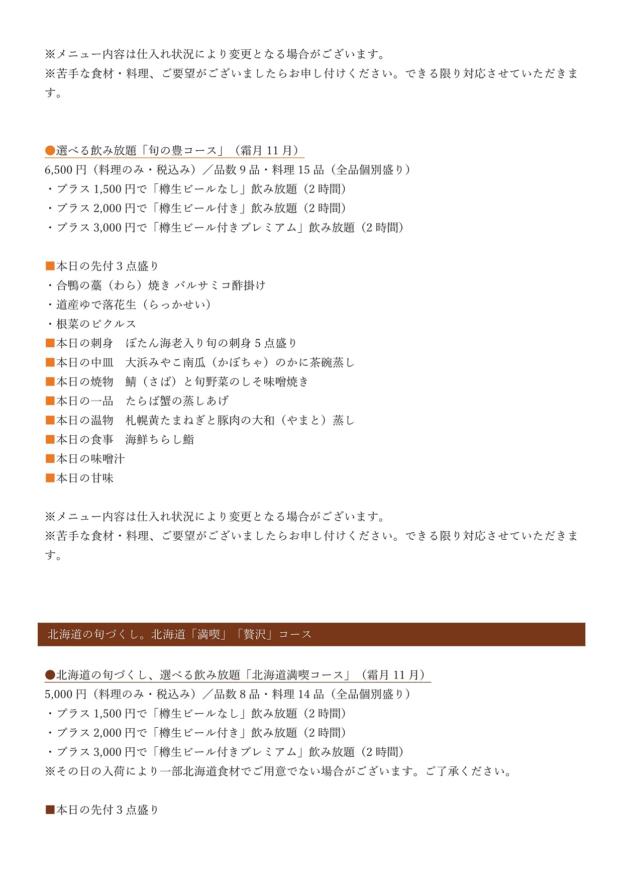 札幌本店 11月宴会コース【2025年11月30日までの期間限定販売】