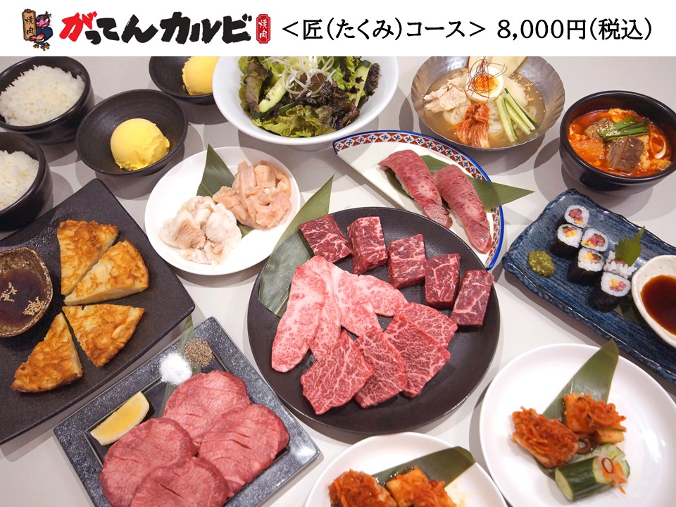【がってんカルビ】熊谷店・さいたま新中里店・エミテラス所沢店 コース料理/お席のご予約を承ります!