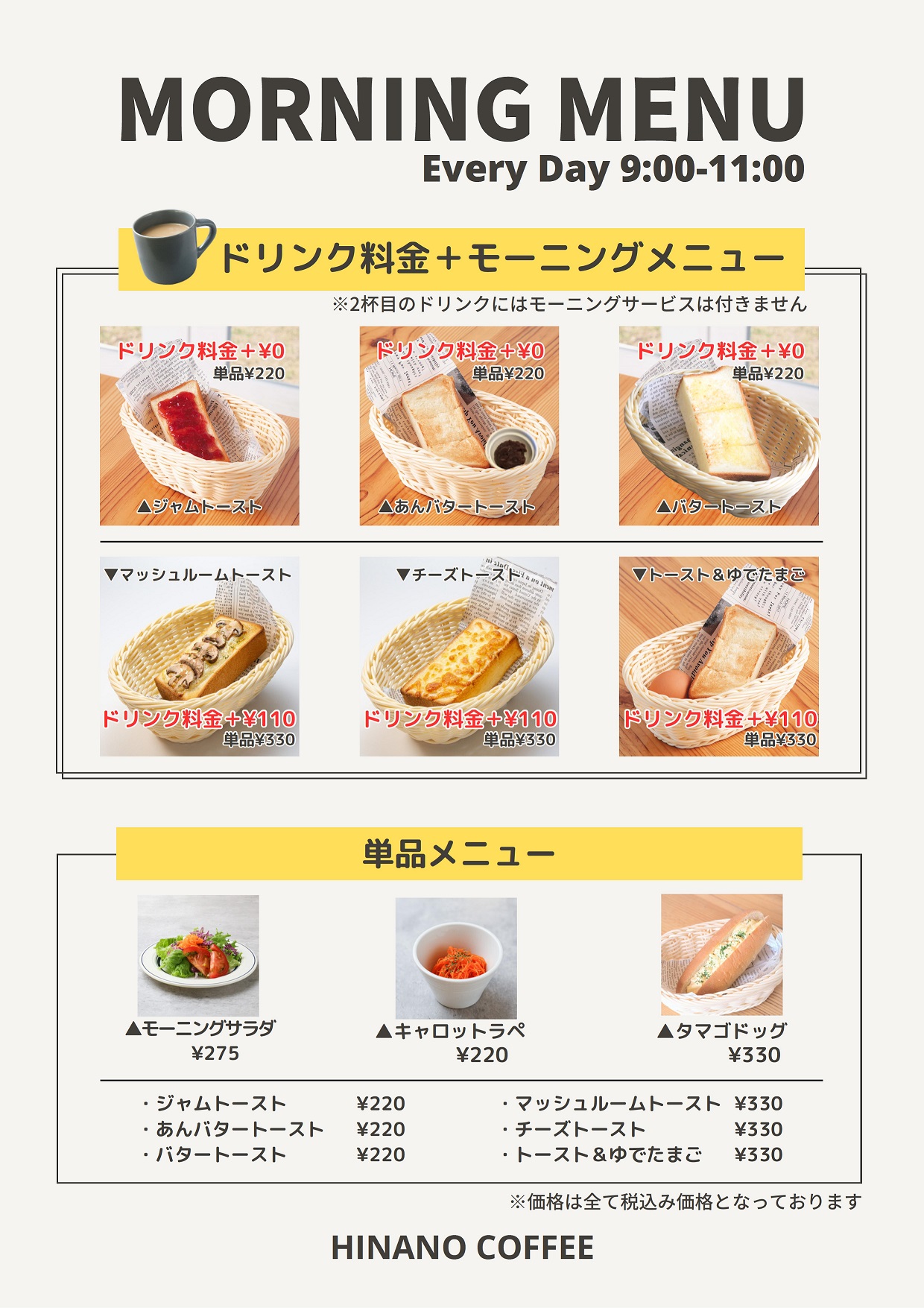 ヒナノ珈琲 NEW MORNING MENU【10月15日より好評販売中】