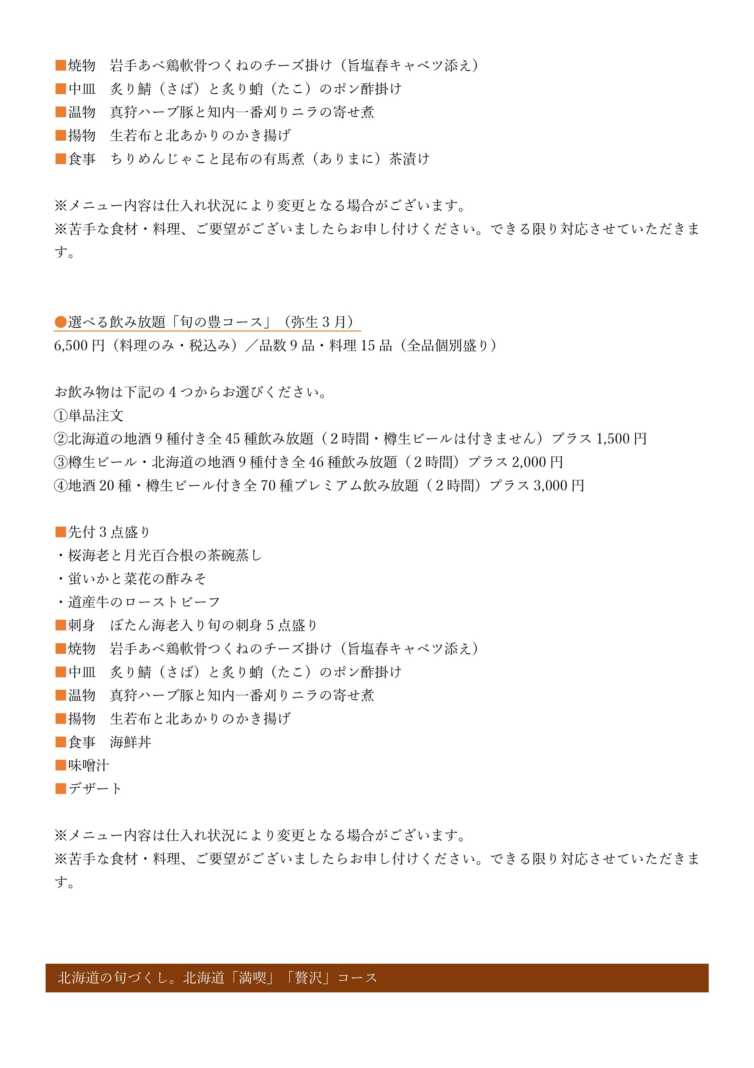 北〇札幌本店では、本日より弥生3月の新宴会コースを開始いたします。