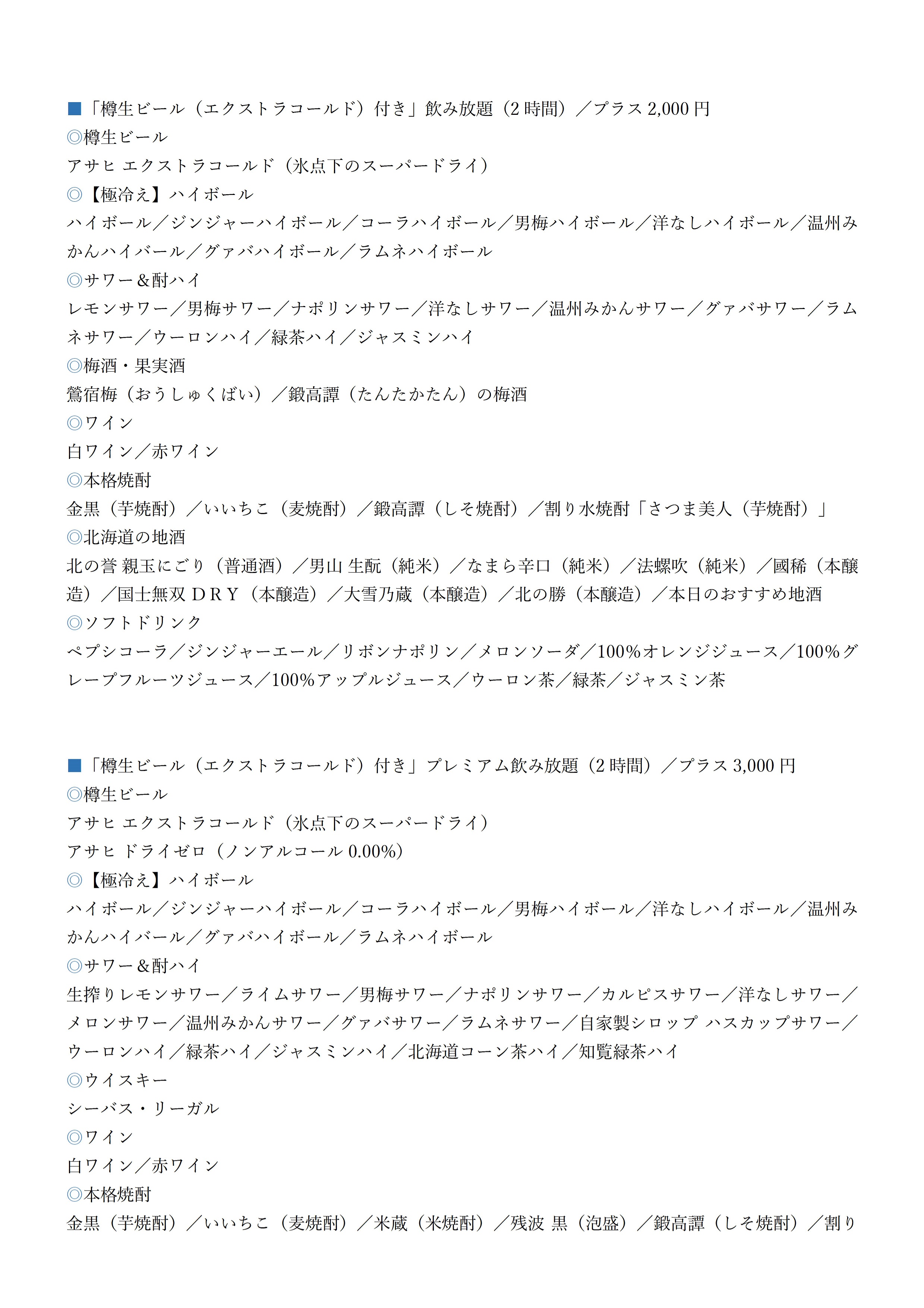 お好みに合わせた「選べる飲み放題」