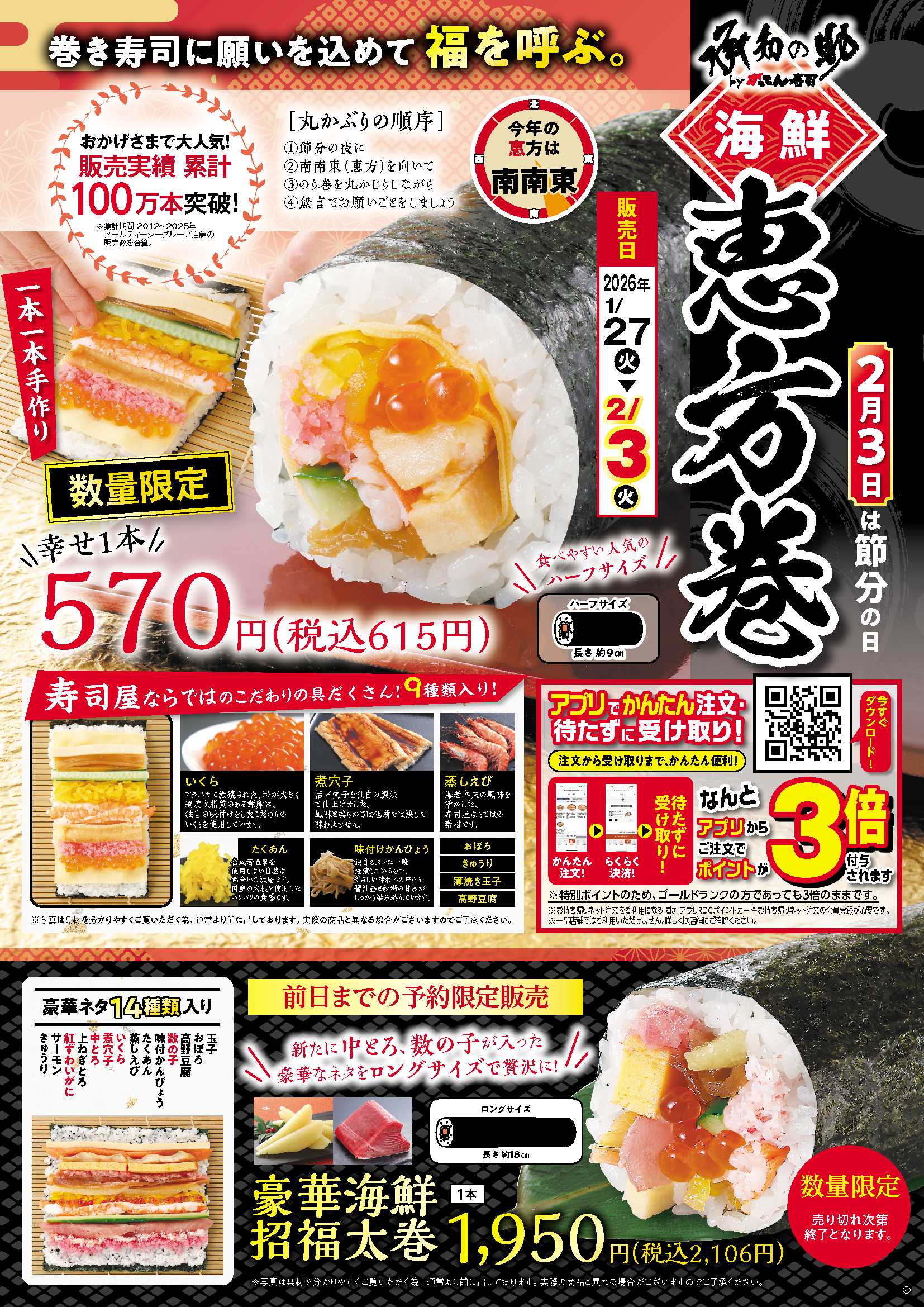 ~一本一本手作り!販売実績累計100万本突破~ 福を呼ぶ!2026年「恵方巻」🍣✨