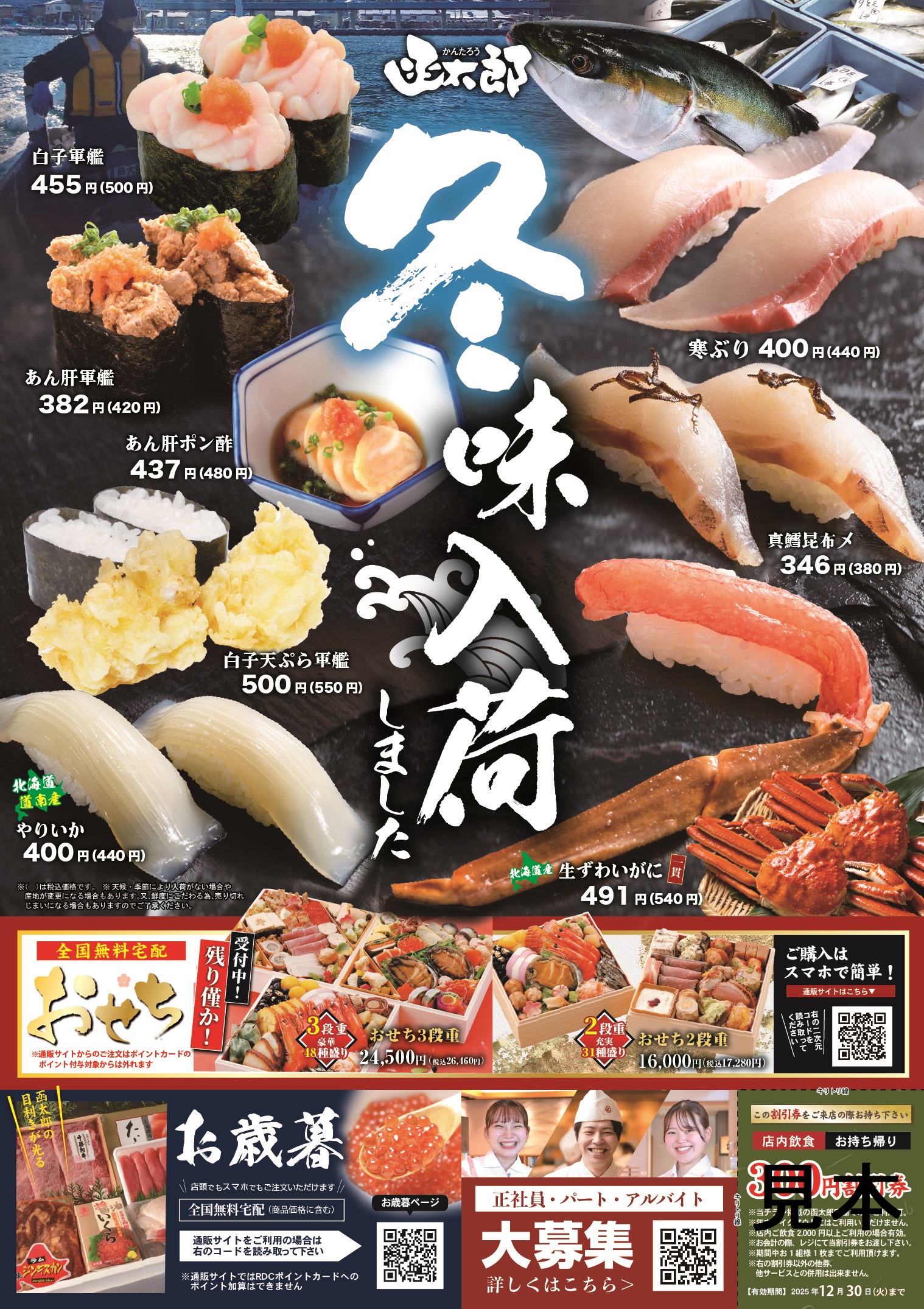 【函太郎】脂の乗った「寒ぶり」や濃厚「白子・あん肝」が登場!『冬味入荷』【2025年12月5日より期間限定販売】