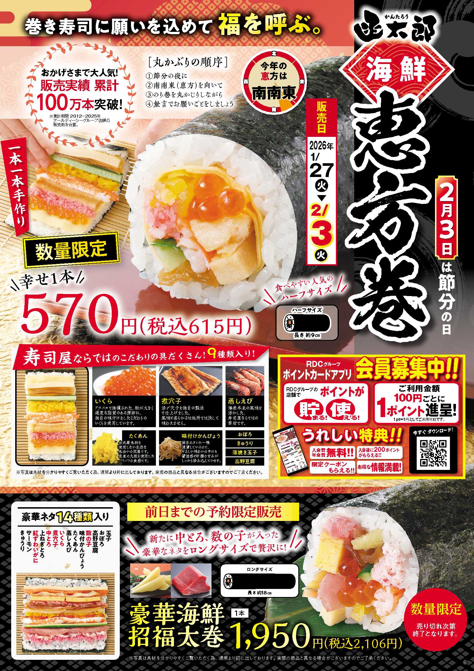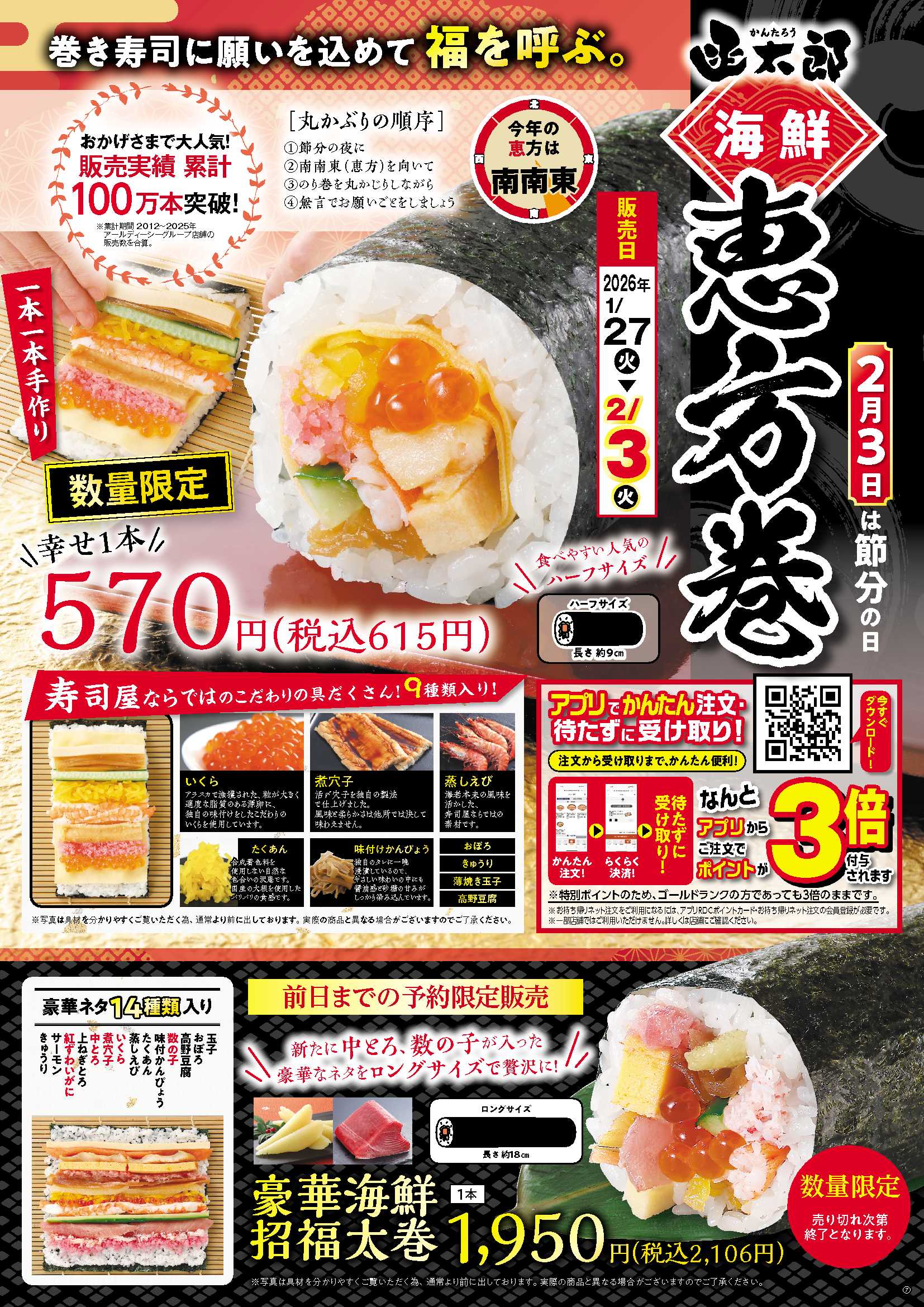 今年の恵方は南南東!函太郎の特製「恵方巻」ご予約受付中🍣【2026年2月1日~2月3日までの限定販売】