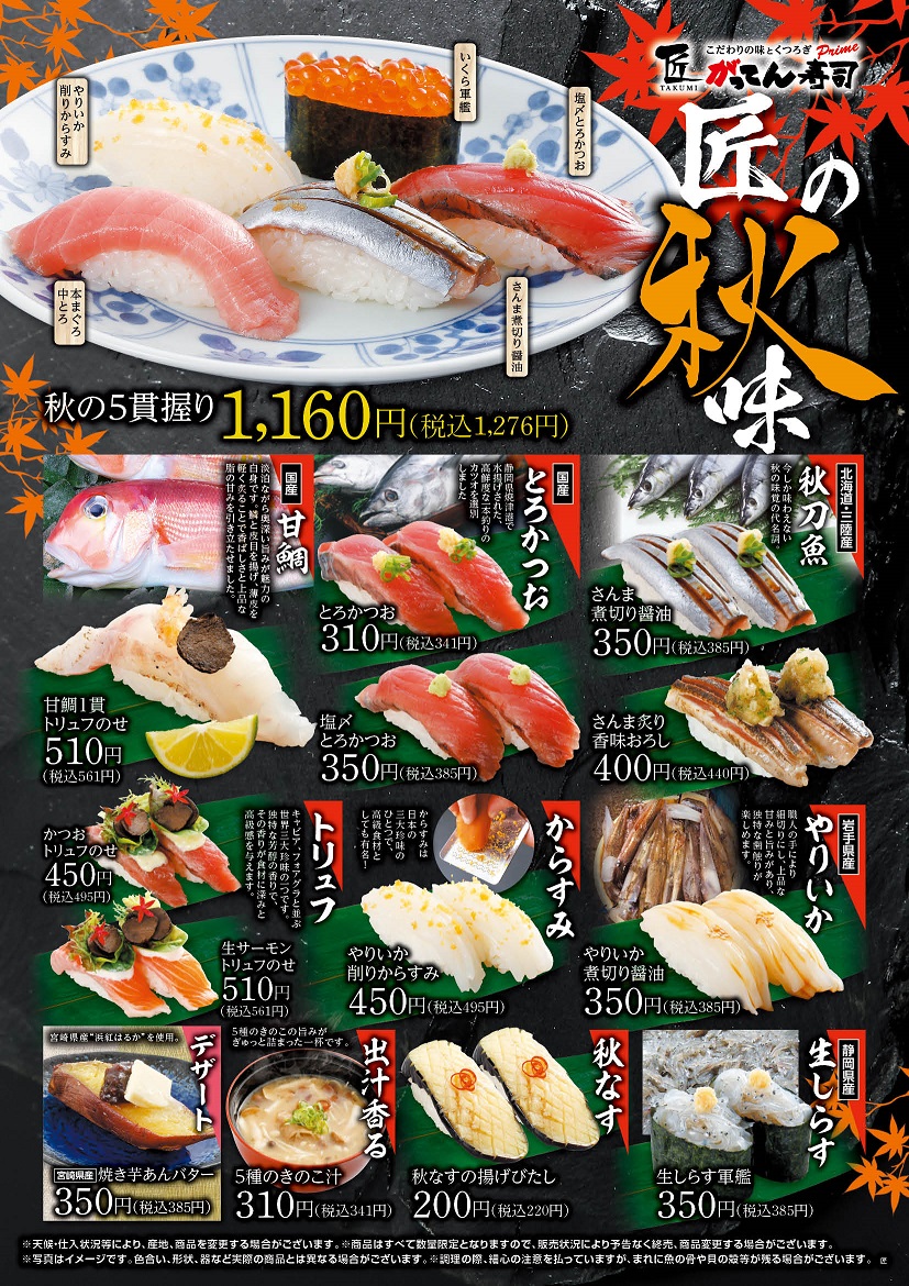 秋刀魚、甘鯛など旬の味覚を一皿で味わえる秋の5貫握り