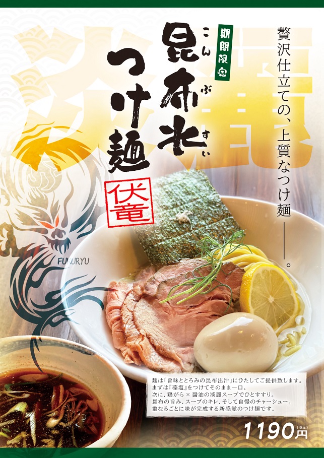 ~ 贅沢仕立ての、上質なつけ麺 ~ 昆布水つけ麺 販売開始🍜