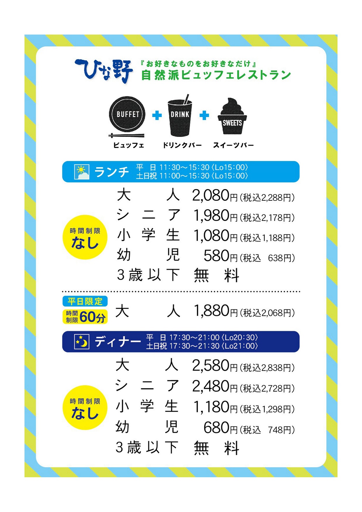 【ひな野】所沢店 料金改定のお知らせ【2025年12月1日より改定】