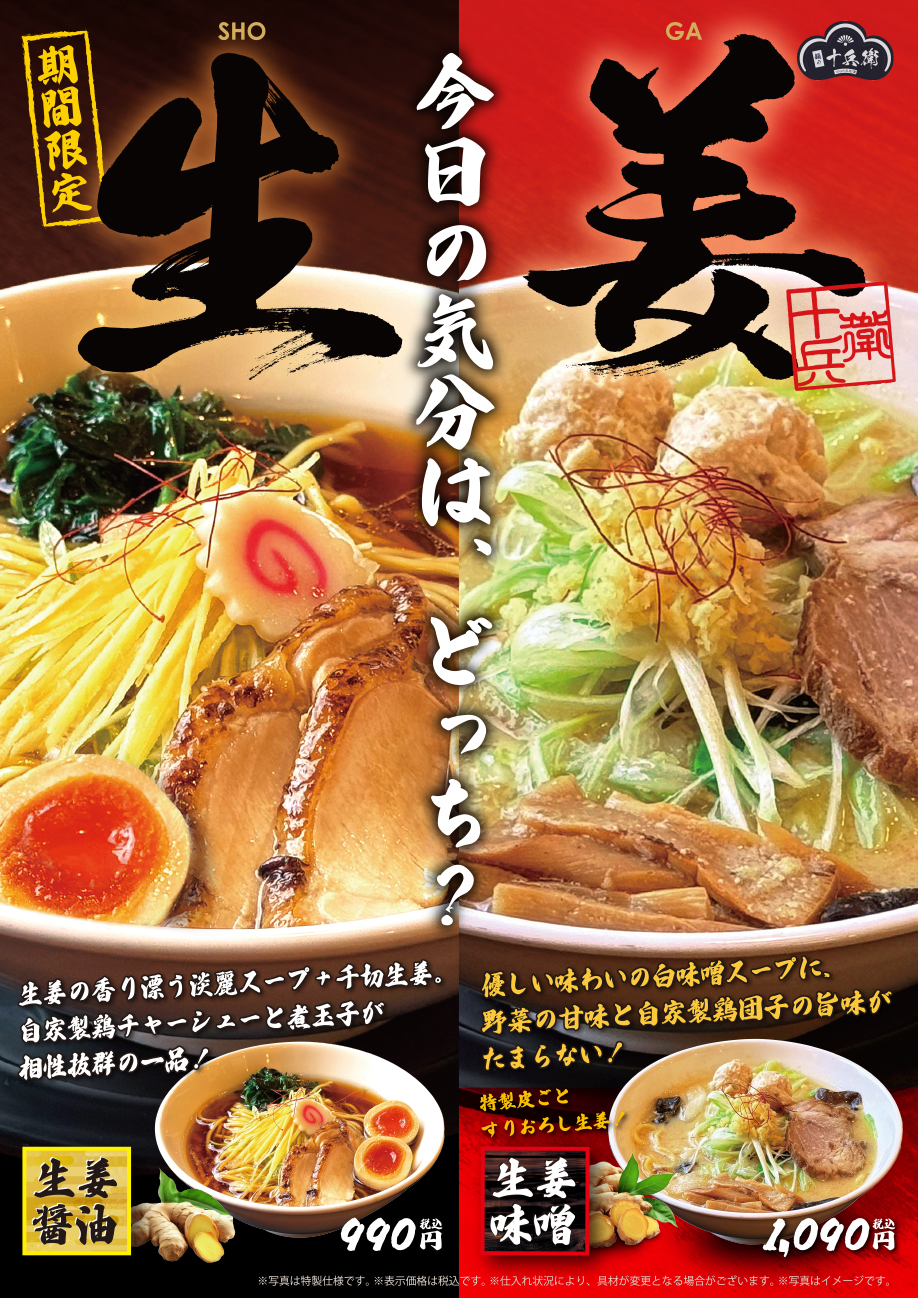 🍜【季節限定】今日の気分はどっち?心も体も温まる「生姜らーめん」のご案内