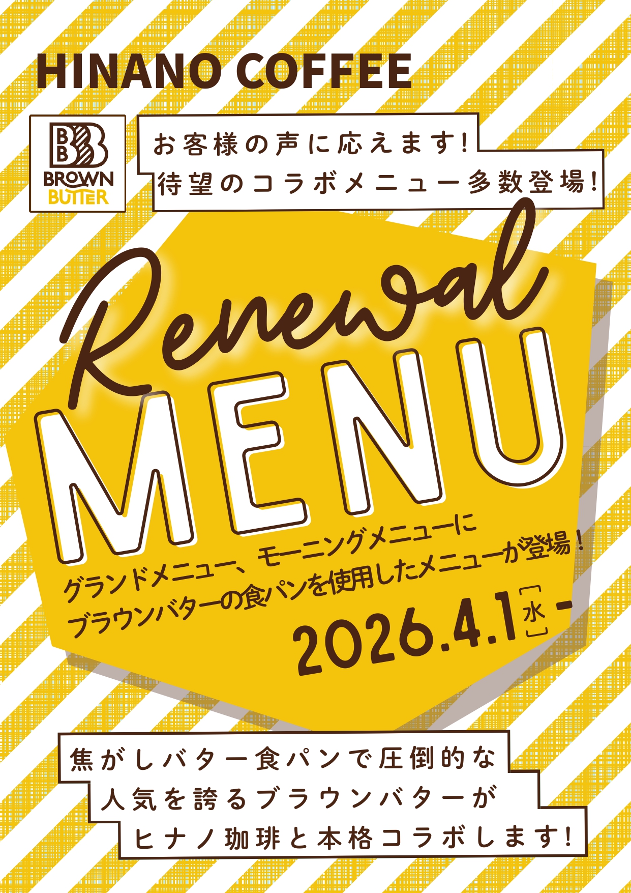 この度、ヒナノ珈琲では2026年4月1日(水)より、グランドメニューおよびモーニングメニューを大幅にリニューアルいたします!